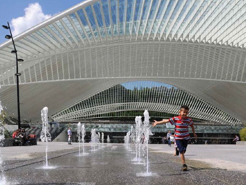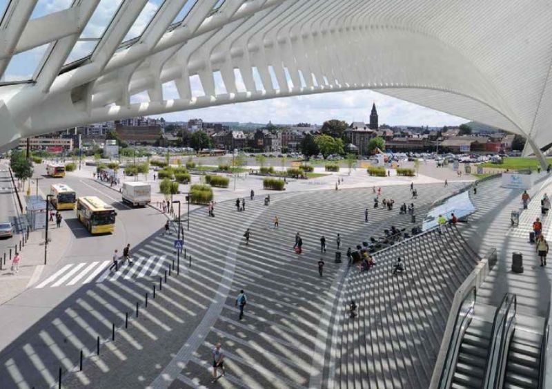 C’est en 1999 que l’architecte urbaniste Claude Strebelle dépose un schéma directeur pour le remodelage du quartier autour de la gare des Guillemins dont le projet avait, trois ans plus tôt, été confié à Santiago Calatrava. Ce document, qui trace les grandes lignes de l’évolution du site depuis la colline de Cointe jusqu’aux bords de Meuse, s’est notamment concrétisé par un appel d’offres international pour la conception d’une place devant les nouvelles installations ferroviaires, appel que le bureau Dethier Architecture, en association avec Ney & Partners, l’Atelier 4D et l’Agence TER, a remporté en 2003. Il a donc fallu plus de dix ans, le dépôt de trois permis d’urbanisme, de nombreuses phases de conciliation entre les différents intervenants (EuroliegeTVG, TEC, Ville de Liège, SRWT …) ainsi que de sévères réajustements budgétaires pour faire aboutir le projet.