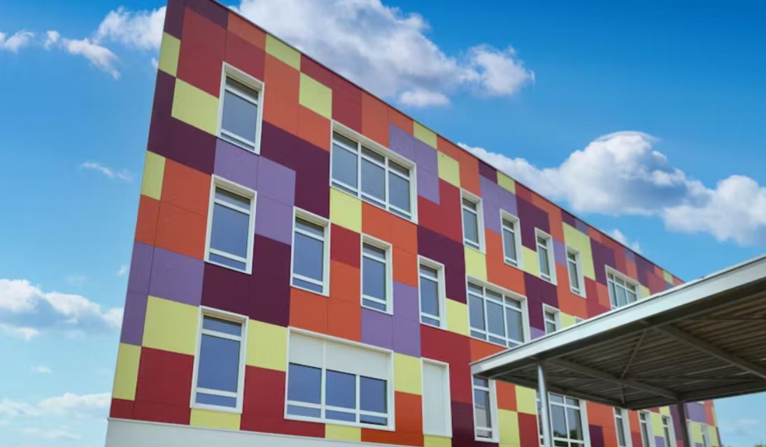 L'architecte Denis Guillet a sélectionné les panneaux Rockpanel pour leur durabilité, leur recyclabilité, et leur large gamme de couleurs. Ce choix a permis de créer une façade dynamique qui anime visuellement le bâtiment.