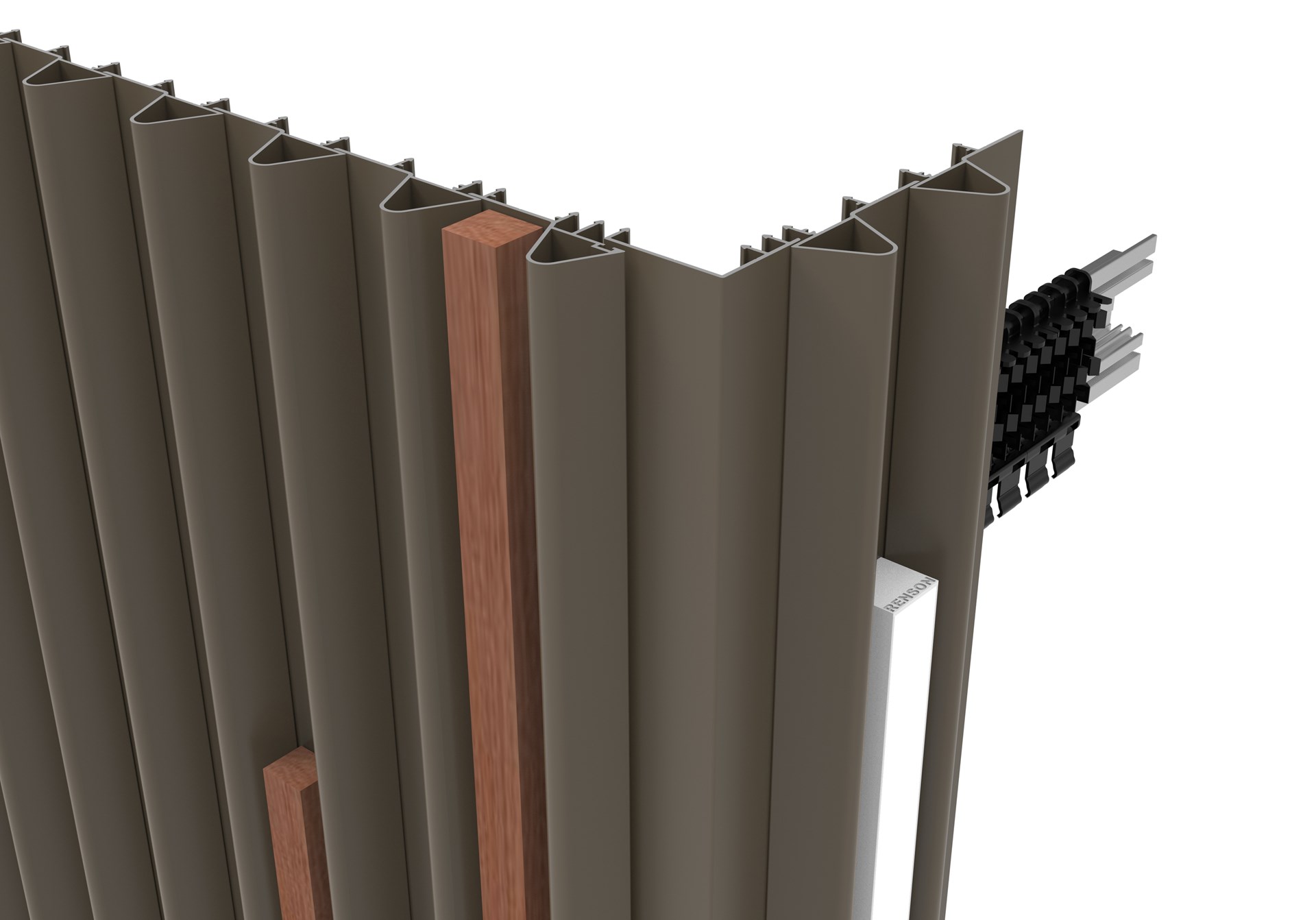 Comme chacun de ces profils individuels est combinable à l’infini, vous bénéficiez d’encore plus de liberté de conception pour les façades intérieures et extérieures, les espaces de vie extérieurs, les clôtures ou les éléments de jardin. Le montage à l’aide de clips en synthétique sur des supports horizontaux est également exactement le même pour les profils Linarte Cone. Vous profitez d’une grande simplicité de montage sans jamais devoir effectuer une découpe sur mesure en largeur. En fait, les clips permettent des corrections, vous offrant ainsi la possibilité de décaler chaque profil jusqu’à 2 mm vers la gauche et 2 mm vers la droite. Des profils assortis sont prévus pour les angles intérieurs et extérieurs.