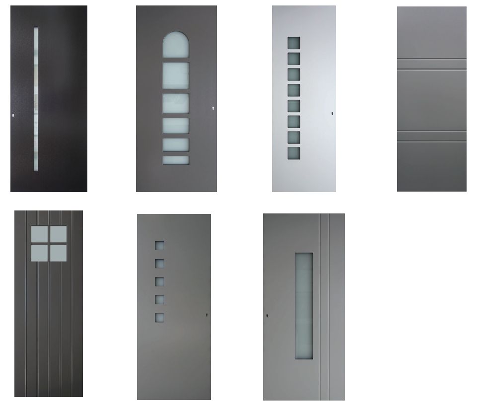 Les épaisseurs sont de 37, 46 et/ou 67 mm, avec une valeur d'isolation de 1,1 à 0,4 W/m ² K. Une double plaque alu de 2 mm assure la stabilité de la forme et protège contre le cambriolage.