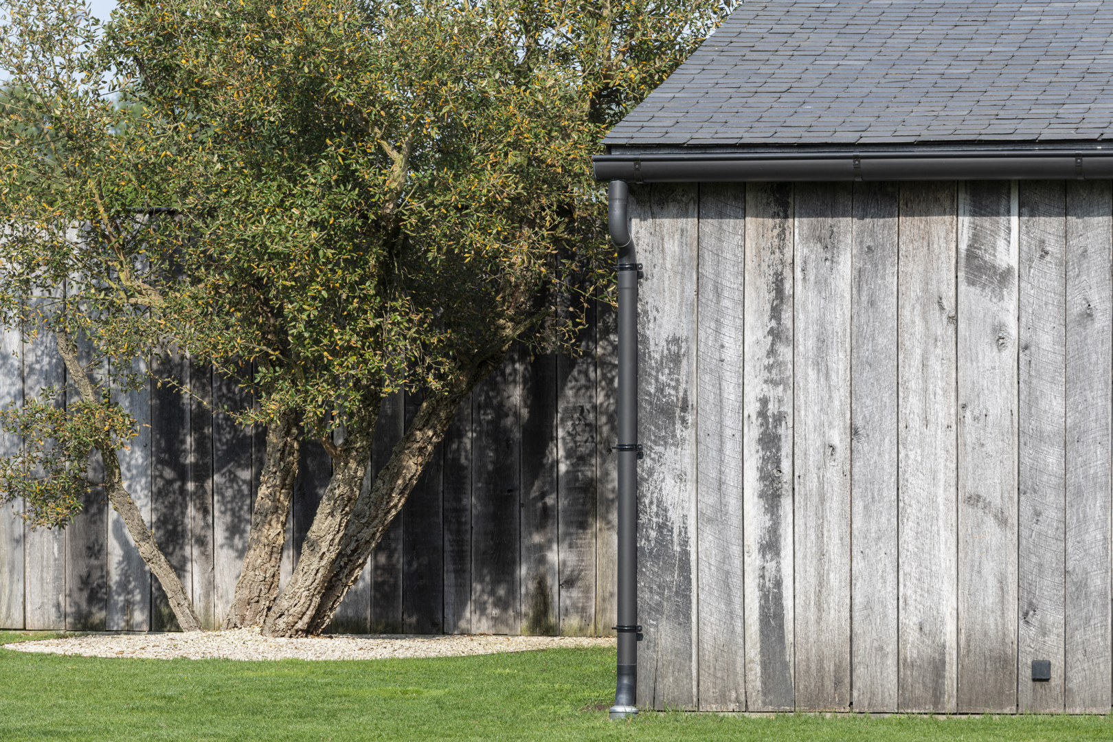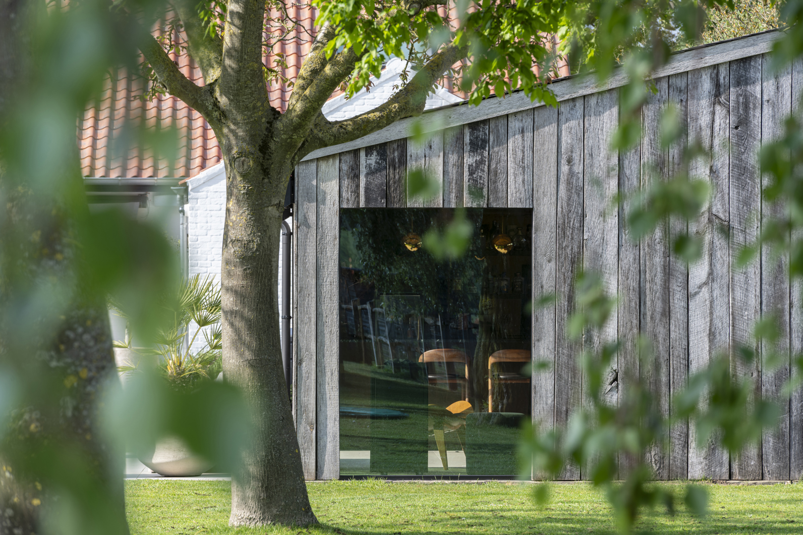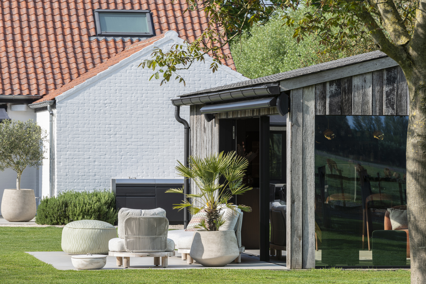Au milieu des vastes prairies verdoyantes des polders idylliques de Damme, Livinlodge a réalisé une annexe en bois unique, parfaitement intégrée à son environnement naturel. La façade est habillée d’un bois de grange au caractère affirmé. Grâce à son aspect naturellement vieilli, ce bois ancien recyclé offre une allure chaleureuse et authentique qui trouve toute sa place dans le paysage environnant.