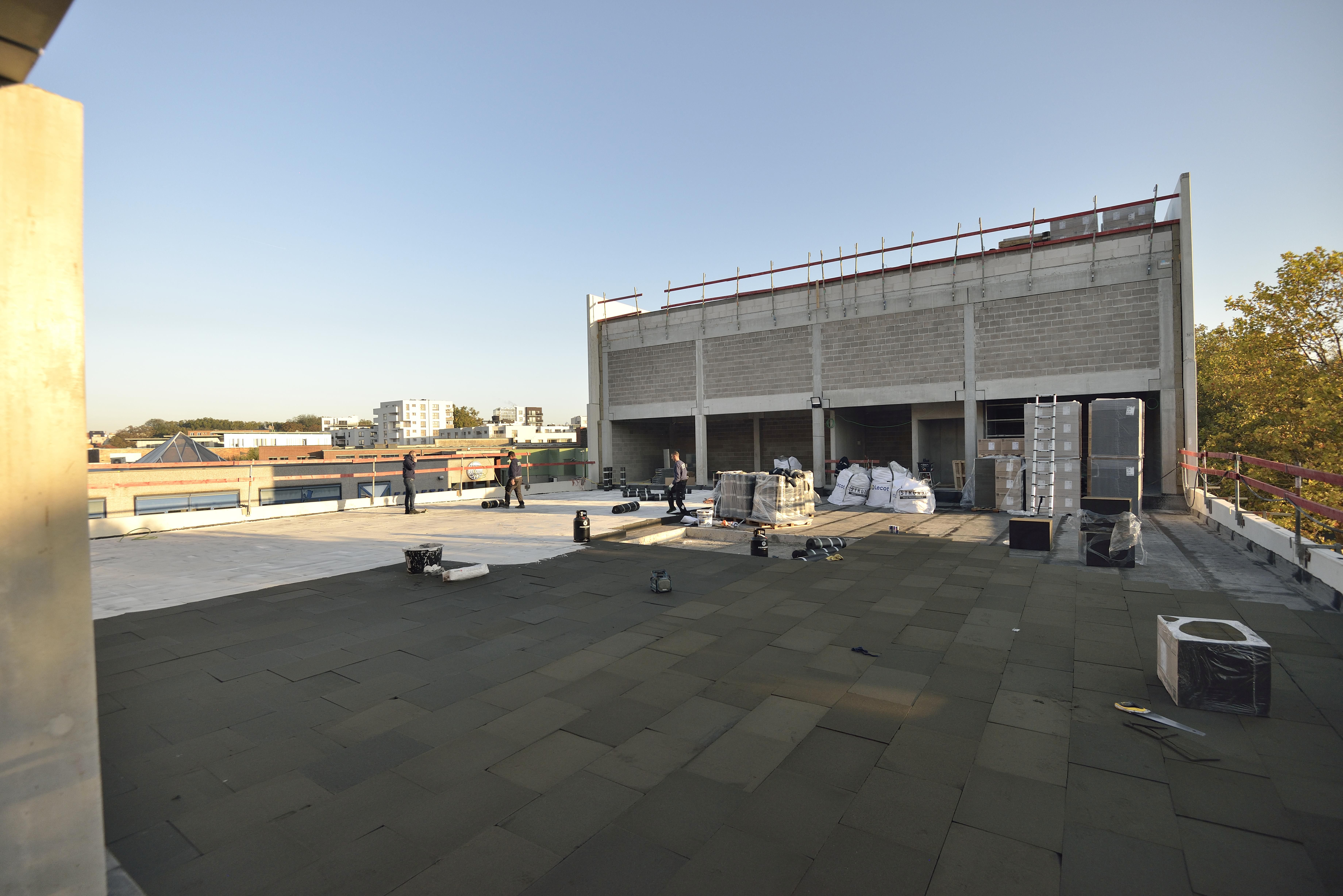 Dès sa conception, MAGASIN 4 a été pensé selon des principes circulaires. La structure est modulaire, permettant des adaptations ou extensions futures sans interventions structurelles majeures. Ainsi, la toiture pourra accueillir de nouveaux volumes, sans transformation lourde. En attendant cette surélévation, le toit est aménagé avec des dalles posées sur plots, créant ainsi un espace extérieur supplémentaire.