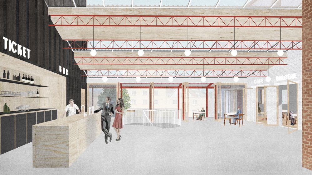 En réponse à ces enjeux, le projet lauréat rassemble les composantes programmatiques autour d’un espace couvert en interaction avec la Dendre, lieu de connexion et de partage entre la salle de concert et le café-théâtre. Prenant le parti de la densité, à l’articulation de la ville et de la campagne, le projet s’inscrit avec finesse dans le tissu existant pour mieux préserver les prairies arrière.