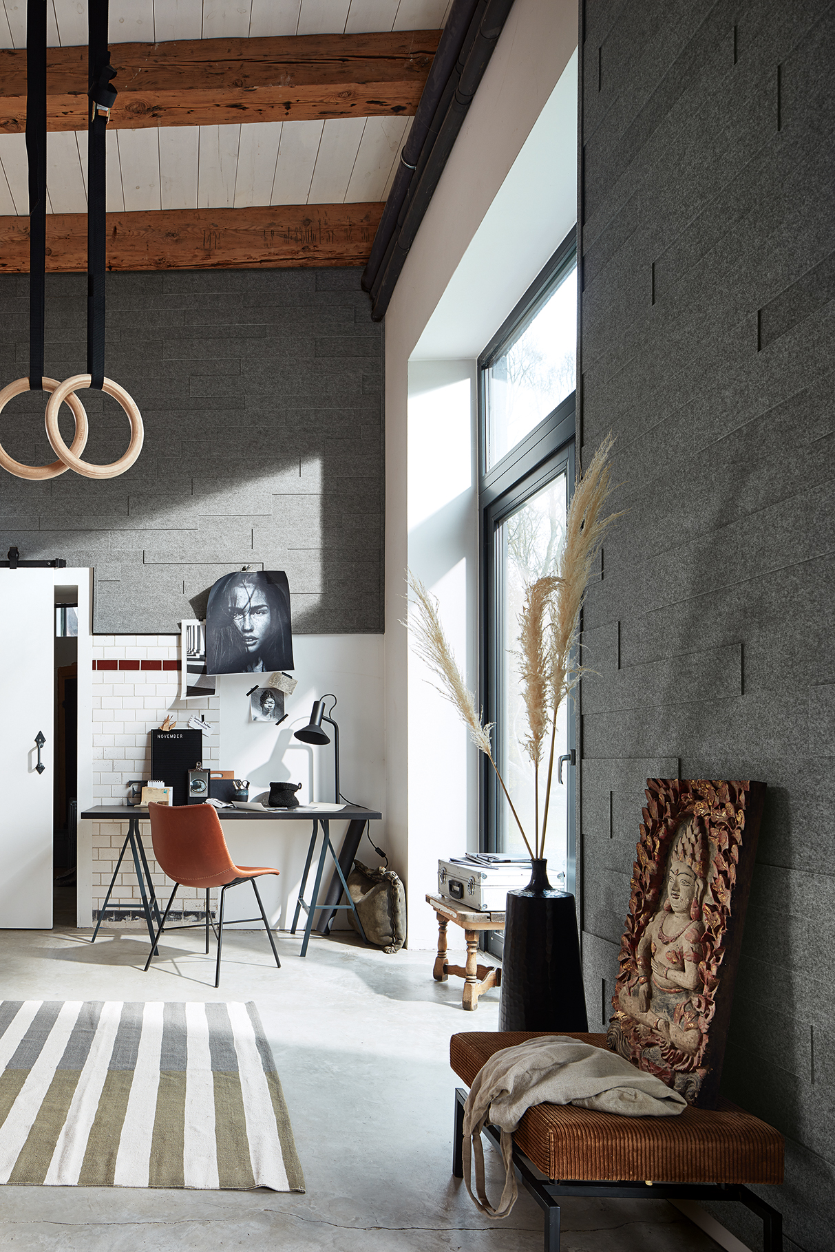 La nouvelle collection MeisterPanels. style SP 800 produite avec du feutre de grande qualité propose une véritable plus-value, en plus de son aspect chic. Le lambris acoustique absorbe 35 % des bruits ambiants (classe absorbante D conformément à la norme DIN EN 11654) et contribue ainsi à créer une atmosphère sensiblement agréable, notamment dans les milieux de vie modernes où les rideaux et autres textiles ne sont utilisés qu’avec parcimonie. Une pose partielle au mur ou au plafond suffit déjà pour profiter des propriétés d’isolation phonique.