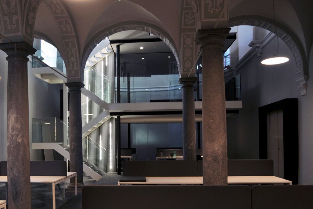 Pour réaménager ces bâtiments datant du 17e siècle, les architectes ont privilégié une philosophie de restauration dans l’esprit d’interventions contemporaines et minimalistes, passant notamment par « un habillage-bardage des bâtiments annexes existants en panneaux noir anthracite, pour l’intégration harmonieuse au patrimoine des entités classées. » Les architectes ont également conçu les aménagements intérieurs en surfaces ouvertes, paysagères et réversibles afin d’unifier et de fluidifier au maximum les entités autour de la cour intérieure du cloître.