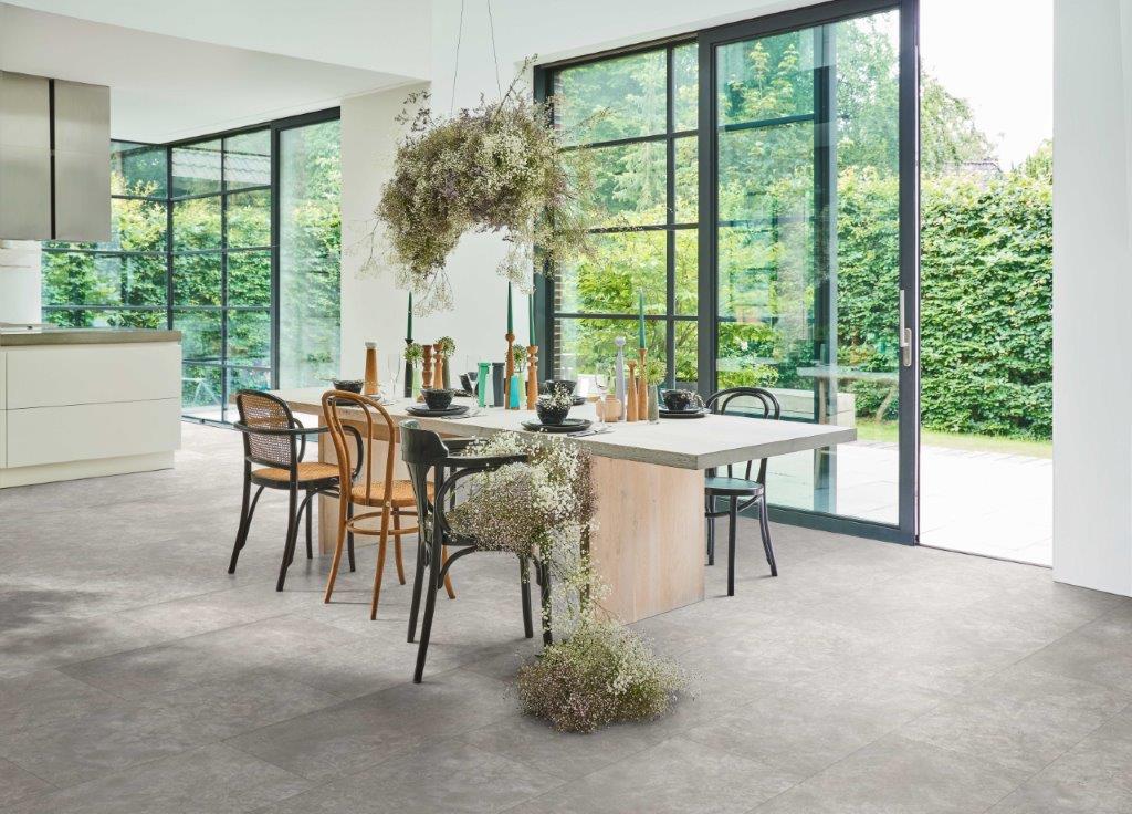 Les nouveaux stratifiés en format grand carrelage séduisent en étant à la fois polyvalents et adaptés à l'usage quotidien. Ils ne représentent pas un obstacle au passage de l'aspirateur ou de la serpillière et peuvent également être posés dans les pièces humides grâce aux panneaux porteurs étanches. De plus, le stratifié Parador est robuste et résistant aux rayures, aux chocs et à l'abrasion.