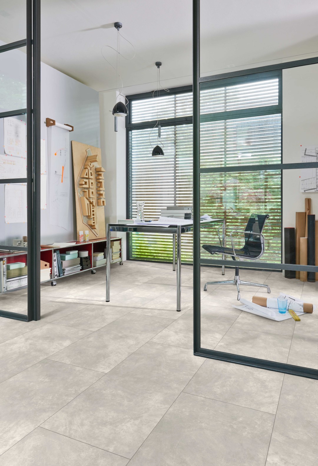 Silencieux et chauds pour les pieds, solides et faciles à nettoyer, adaptés au chauffage par le sol et dotés d'un aspect et d'un toucher convaincants, les stratifiés et lames Modular ONE de la collection carrelage 2019 de Parador offrent de nombreux avantages par rapport aux carrelages traditionnels en pierre ou en céramique.