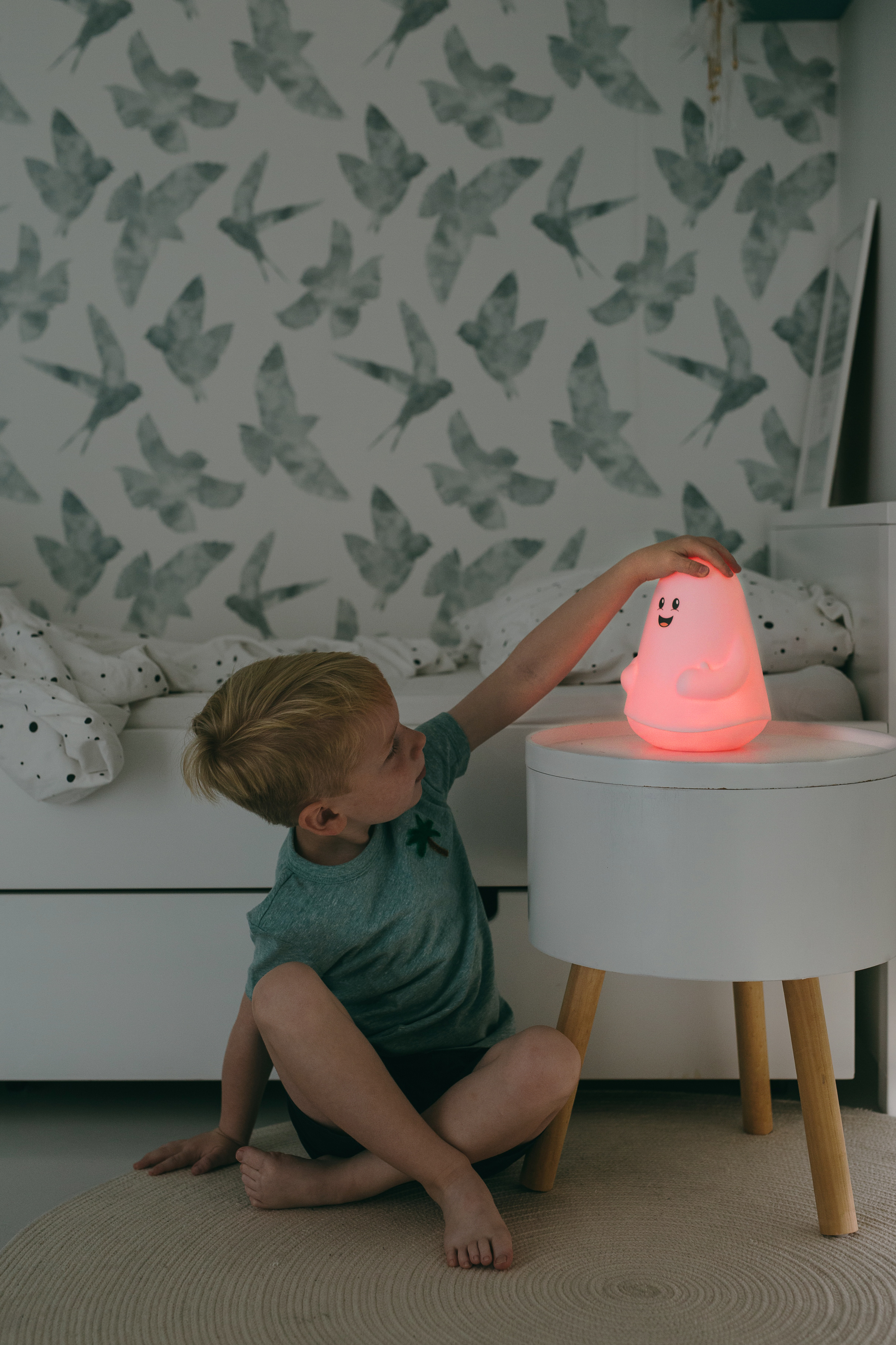 Les parents peuvent activer le chasseur de fantôme myBOO! de façon très simple en appuyant sur le bouton ON/OFF pendant deux secondes. Le gentil petit fantôme chasse ensuite les mauvais esprits en changeant de couleur d’une minute à l’autre : rouge (danger), bleu (les gentils esprits sont épargnés) ou vert (la voie est libre !). Et s’ils veulent accélérer les choses, les enfants peuvent tapoter le fantôme. Une fois la chasse terminée, myBOO! émet une lumière blanche pendant dix minutes. Il passe ensuite à une lumière tamisée à l’heure du dodo. myBOO! procure donc un sentiment de sécurité mais renforce également les liens entre parent et enfant (et assure une bonne nuit de repos pour les uns comme pour les autres).
