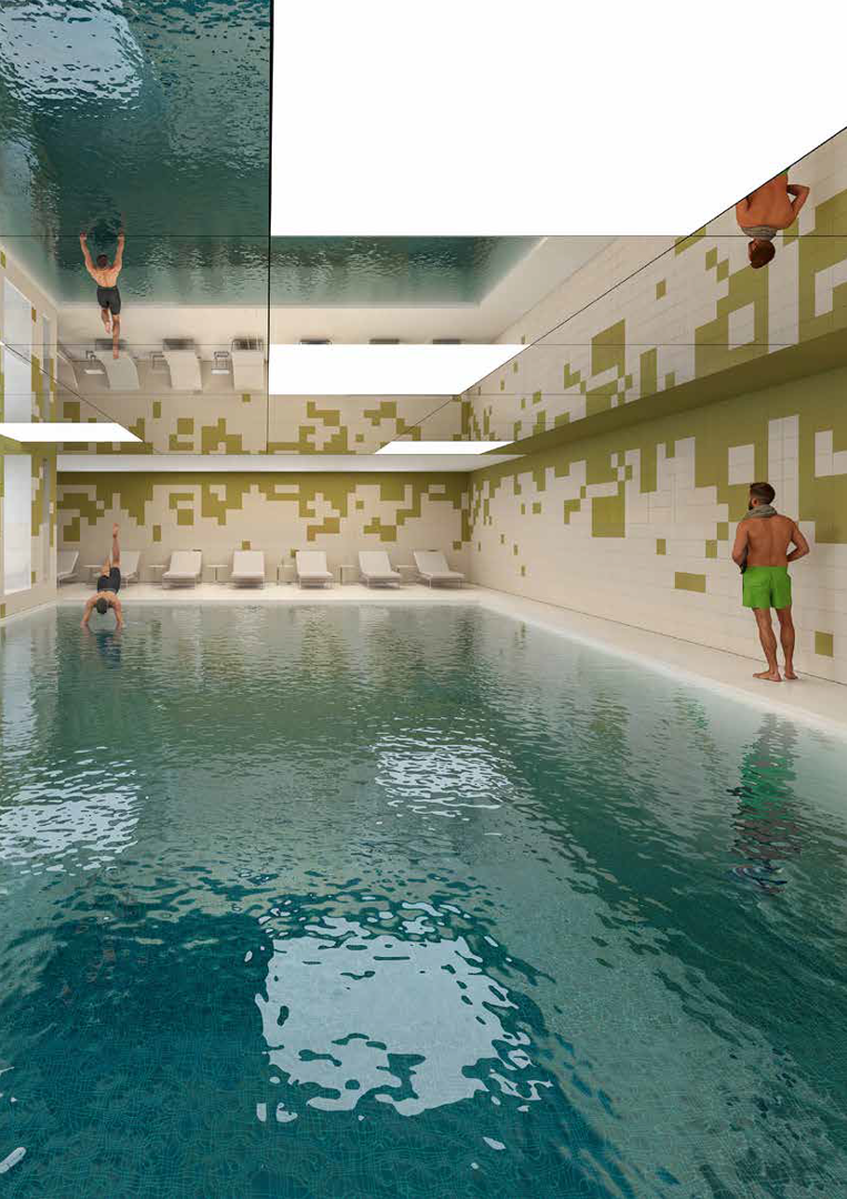 Un bassin moderne y sera aménagé, accessible non seulement aux résidents mais aussi aux habitants du quartier, renforçant l’ouverture du projet sur la ville. Les coursives intérieures faciliteront les circulations et rappelleront l’esprit du lieu d’origine.