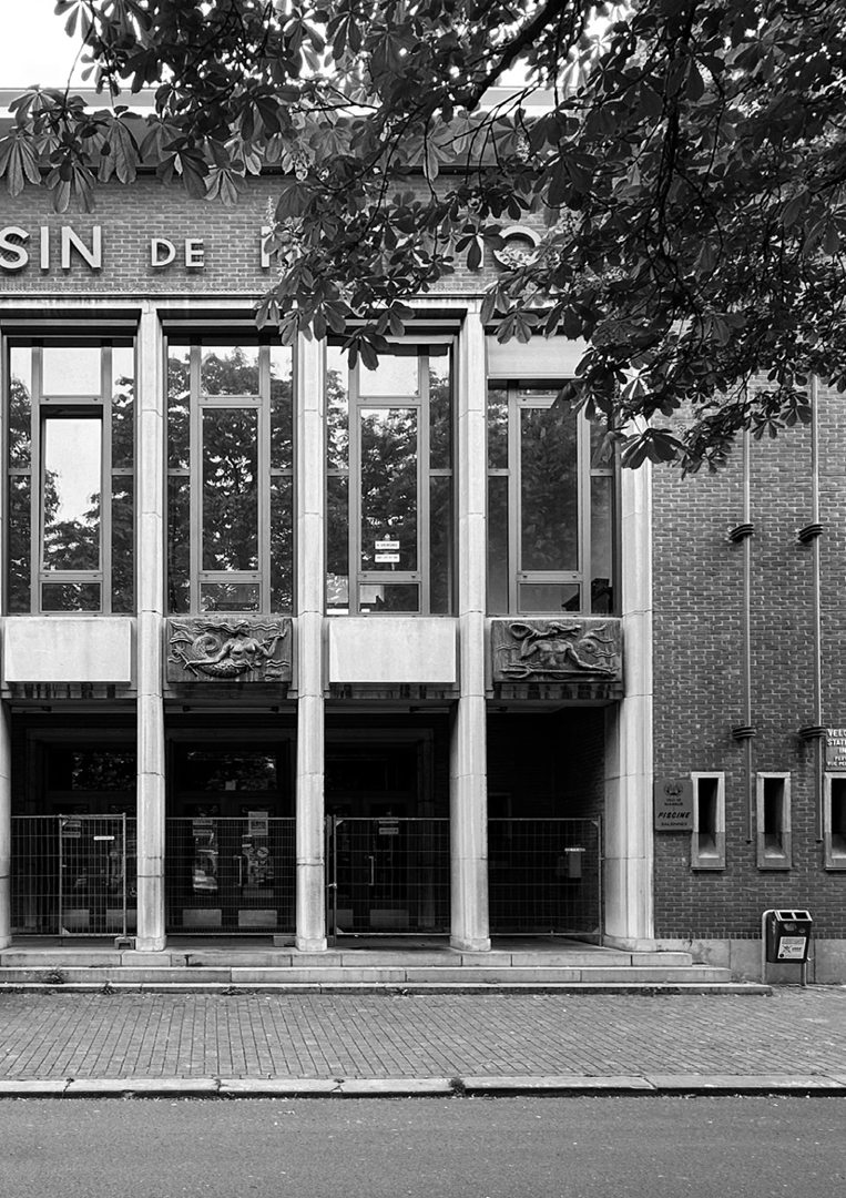 Construit en 1957, l’immeuble en briques rouges se distingue par ses hautes ouvertures verticales et sa façade ornée de bas-reliefs. Véritable repère du quartier de Salzinnes, il s’inscrit dans le paysage des bords de Sambre.