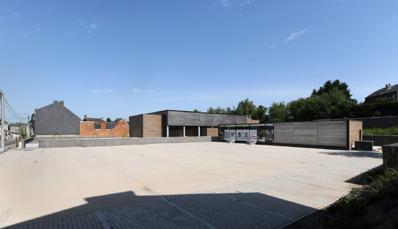Dans un premier temps, les architectes ont validé la pertinence du site choisi par la ville de Namur avant de concevoir un projet de développement de l’ensemble du terrain. La qualité du projet repose bien évidemment sur la salle polyvalente elle-même mais également sur l’agencement des espaces extérieurs destinés à devenir des ‘places’ publiques que s’approprieront les habitants. Ces espaces publics revêtent d’autant plus d’importance que le site est relativement grand.