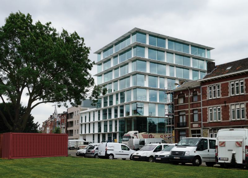 Agoria, la fédération de l’industrie technologique, souhaitait moderniser ses installations et s’offrir un nouvel immeuble à l’image de ses ambitions et de son dynamisme. Le projet, dont le chantier entre dans sa dernière phase, prend place sur une large parcelle appartenant à la fédération et qui se situe dans le quartier résidentiel des Vennes, à Liège. La démolition des immeubles existants et l’acquisition de 2 maisons mitoyennes ont libéré un vaste terrain au coeur du tissu urbain. De fait, la parcelle bénéficie de 42 mètres à front de voirie et d’une profondeur de 70 mètres. L’espace disponible, le programme du projet et son implantation urbanistique créent un contexte de travail aux enjeux multiples. Agoria a souhaité rassembler une équipe plurielle et solidaire capable de lui offrir toutes les compétences nécessaires pour maîtriser l’ensemble des opérations : conception, exécution, études de stabilité et gestion des techniques spéciales, en particulier celles liées aux économies d’énergie. La construction a été confiée à l’association des bureaux Greisch, Archeops et Neo&Ides. Ainsi, l’ensemble des contraintes ont pu être traitées simultanément dès les premières esquisses pour arriver au niveau de qualité attendu par le maître de l’ouvrage.