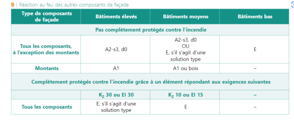 Les nouvelles exigences, plus strictes que les précédentes, ne portent pas seulement sur la réaction au feu des revêtements de façade. La réglementation comprend aussi de nouvelles conditions pour les autres composants de la façade, tels que l’isolation et l’ossature.