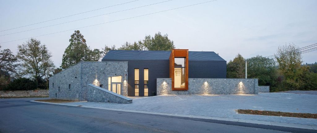 L’Administration Communale de Marche-en-Famenne a confié au bureau d’architecture Hotua-Poncelet le projet de construction d’une nouvelle salle de village à Humain pour remplacer l’ancienne, devenue vétuste. L'objectif des architectes était de proposer un projet architectural de qualité tout en respectant le caractère rural bien affirmé du village.