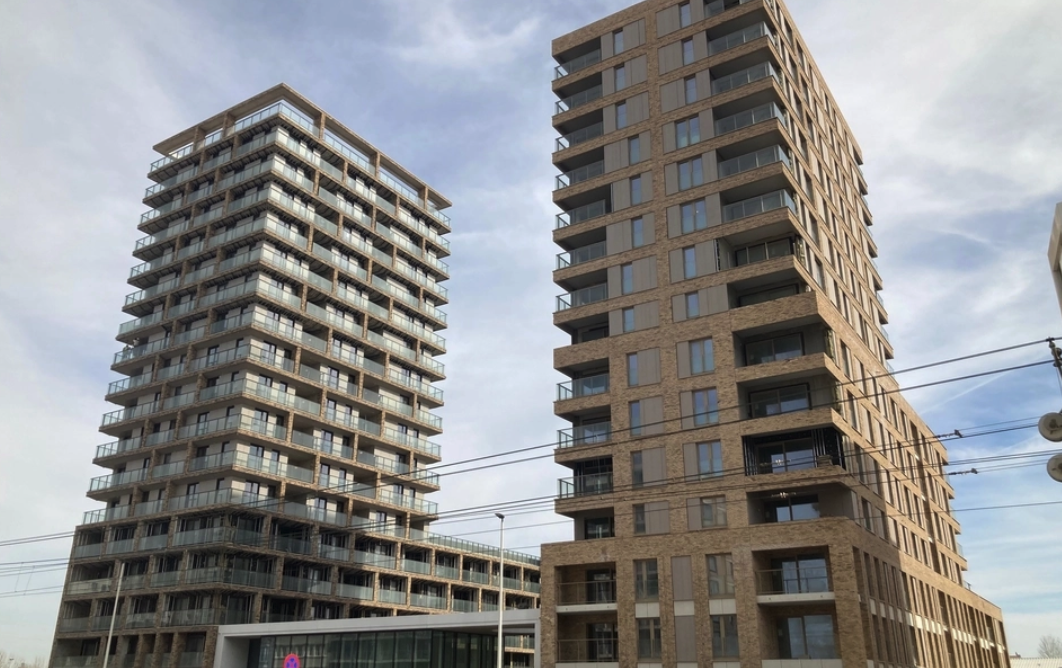 Dans la tour la plus basse (HI), les briques ont été collées selon la méthode traditionnelle. Pour la tour JK, nous avons opté pour des éléments en béton préfabriqué comportant des plaquettes de parement incorporées, tandis que pour le bloc L, nous sommes allés encore plus loin avec des panneaux sandwichs préfabriqués. À grande hauteur, le problème est que les plaquettes de parement ne peuvent pas être collées sur les panneaux. En collaboration avec Vandersanden et le spécialiste du béton Loveld, les architectes ont trouvé la solution : ils ont incorporé les plaquettes de parement dans des panneaux en béton, ce qui leur assure une adhérence suffisante. Chaque bâtiment a ainsi bénéficié d’une solution qui a permis de respecter les délais et les budgets, tout en étant acceptable pour toutes les parties.