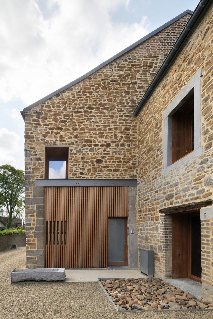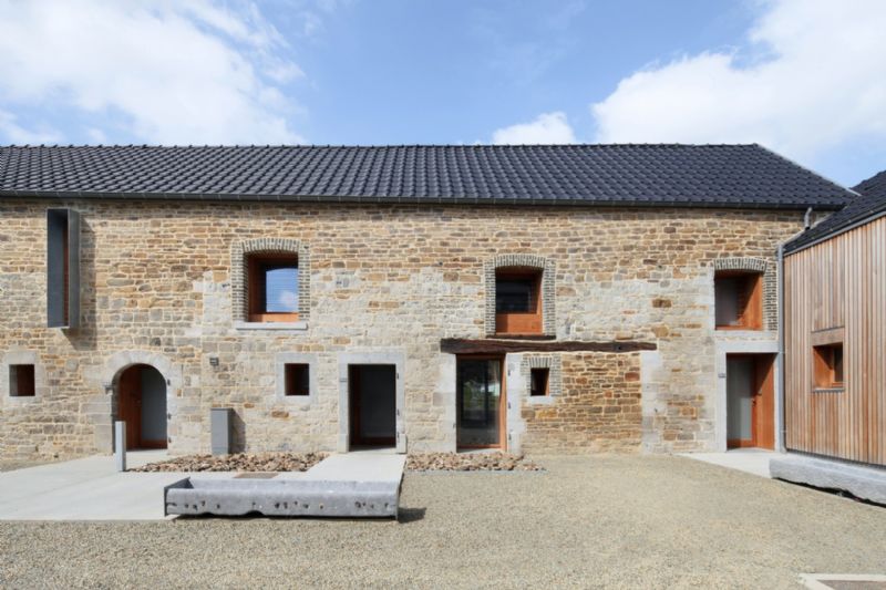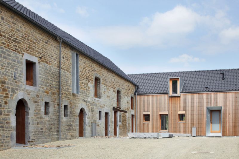 Le site d’intervention présente des qualités patrimoniales intéressantes : environnement préservé, typologie de ferme classique en carré de qualité et façades peu remaniées. Afin de rendre compatible l’intégration de 8 logements sociaux dans la structure existante et par extension dans le village, le projet adopte une posture discrète, caractérisée par le maintien et la mise en valeur des gabarits existants et par des interventions contemporaines parcimonieuses.