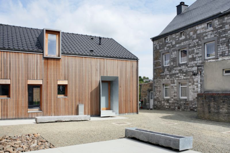 Au cœur d’Anthisnes, village condruzien homogène, Olivier Fourneau architectes a transformé une ancienne ferme en carré en un ensemble de 8 logements pour le compte du Fonds du Logement des Familles Nombreuses de Wallonie. La réception provisoire a eu lieu en avril 2015.