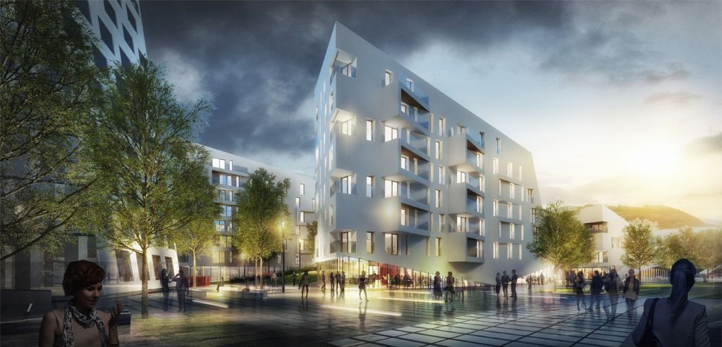 Ce qui frappe dans le projet, ce sont les perspectives ouvertes, les nombreux toits verts et les bâtiments ondulants, qui semblent parfois effleurer furtivement le sol pour ensuite s’élever à nouveau. Paradis Express apporte non seulement de la vie et du dynamisme, mais aussi de la verdure dans la ville et de l’harmonie sur la ligne d’horizon.