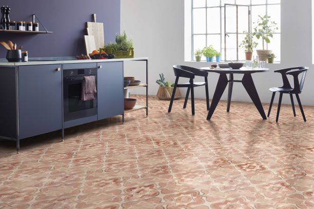 Les sols Bologna et Copenhagen imitent le parquet de chêne. Le choix est laissé entre le bois de chêne fumé foncé avec fraisage ou le parquet clair, typiquement scandinave, avec des éléments foncés. Pour ceux qui préfèrent le vinyle, Rann of Kutch est un bon choix. Ce modèle rappelle l'artisanat folklorique avec ses nuances de violet et ses ornementations subtiles. Hangzhou, en revanche, combine l'aspect asiatique des bardeaux de toit avec un style béton moderne. Avec Malaga et Rotterdam, nous avons deux sols stratifiés expressifs. Ici, ce qui fascine est, d'une part, la combinaison des formes et des couleurs dans un motif carrelage vintage et, d'autre part, l'association du bois et du métal dans des tons de brun chaud et de turquoise froid. Le revêtement de sol élastique Modular ONE, développé par Parador, fait également partie de la collection spéciale. Alors qu'Essen séduit par ses structures linéaires en brun-rouille et gris acier, le modèle Athens, avec son aspect de marbre blanc, apporte de la modernité dans la pièce.