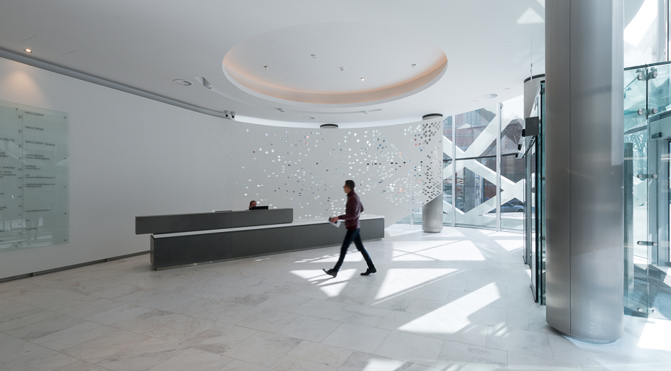 Le second projet concerne la construction d’un nouvel immeuble d’angle composé de commerces et de bureaux, sur trois étages, au pied de la Blue Tower. La toiture sera verte et un espace commercial de 1 441 m² est prévue sur deux sous-sols. Le bâtiment se voudra également très ouvert et lumineux.