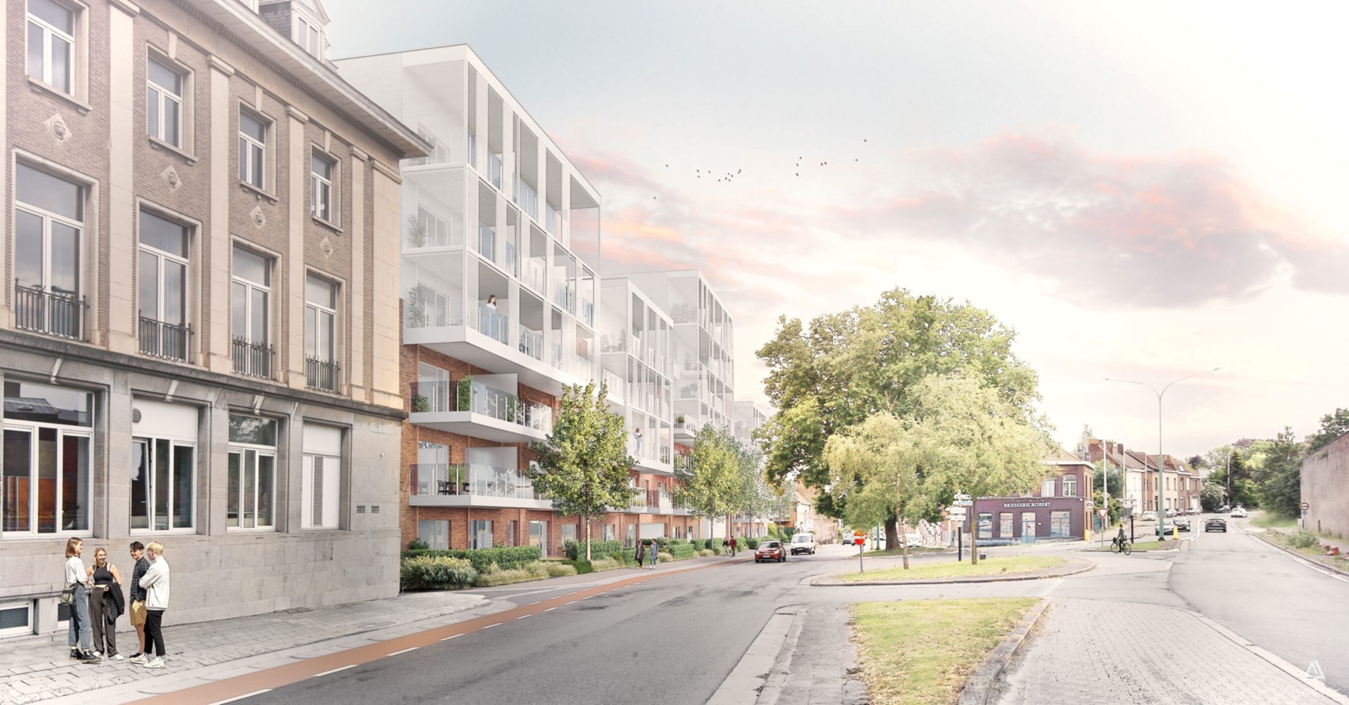 Avec des toitures collectives accessibles, des espaces verts (publics et privés) et des lieux à vocation communautaire, ce projet offrira des logements de qualité dans un cadre naturel et revitalisera positivement tout le quartier. Le projet se distingue par deux fronts architecturaux : un front continu côté Chaussée d'Antoing et un front plus ouvert et fragmenté le long du RAVeL. Cet équilibre permet une implantation dynamique et organique, garantissant un site vivant et bien intégré à son environnement naturel et urbain.