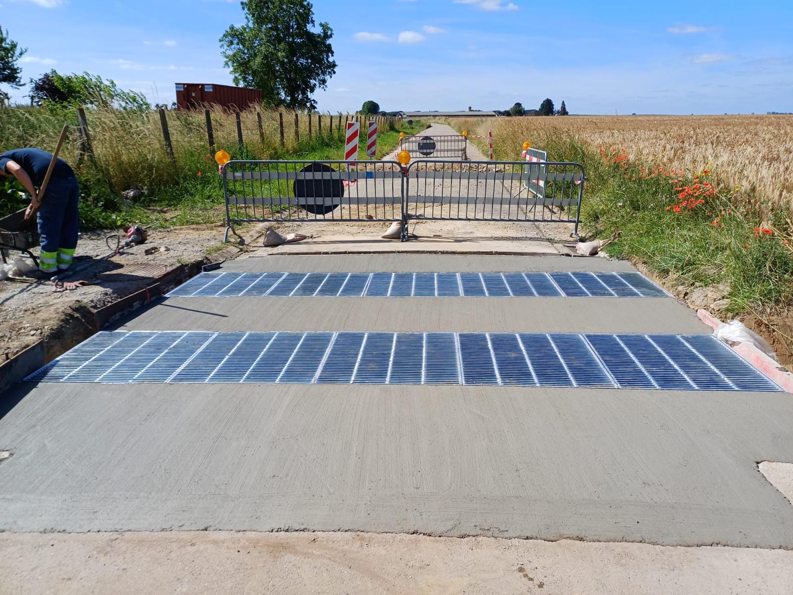 C'est dans la Neerwindenstraat de la commune de Linter qu'Ecobeton Water technologies ces grilles placées au-dessus de deux bassins tampon. Ceux-ci garantissent, qu'à l'avenir, en cas de fortes averses, la boue et le limon ne s'écoulent plus des champs vers le centre inférieur du village.