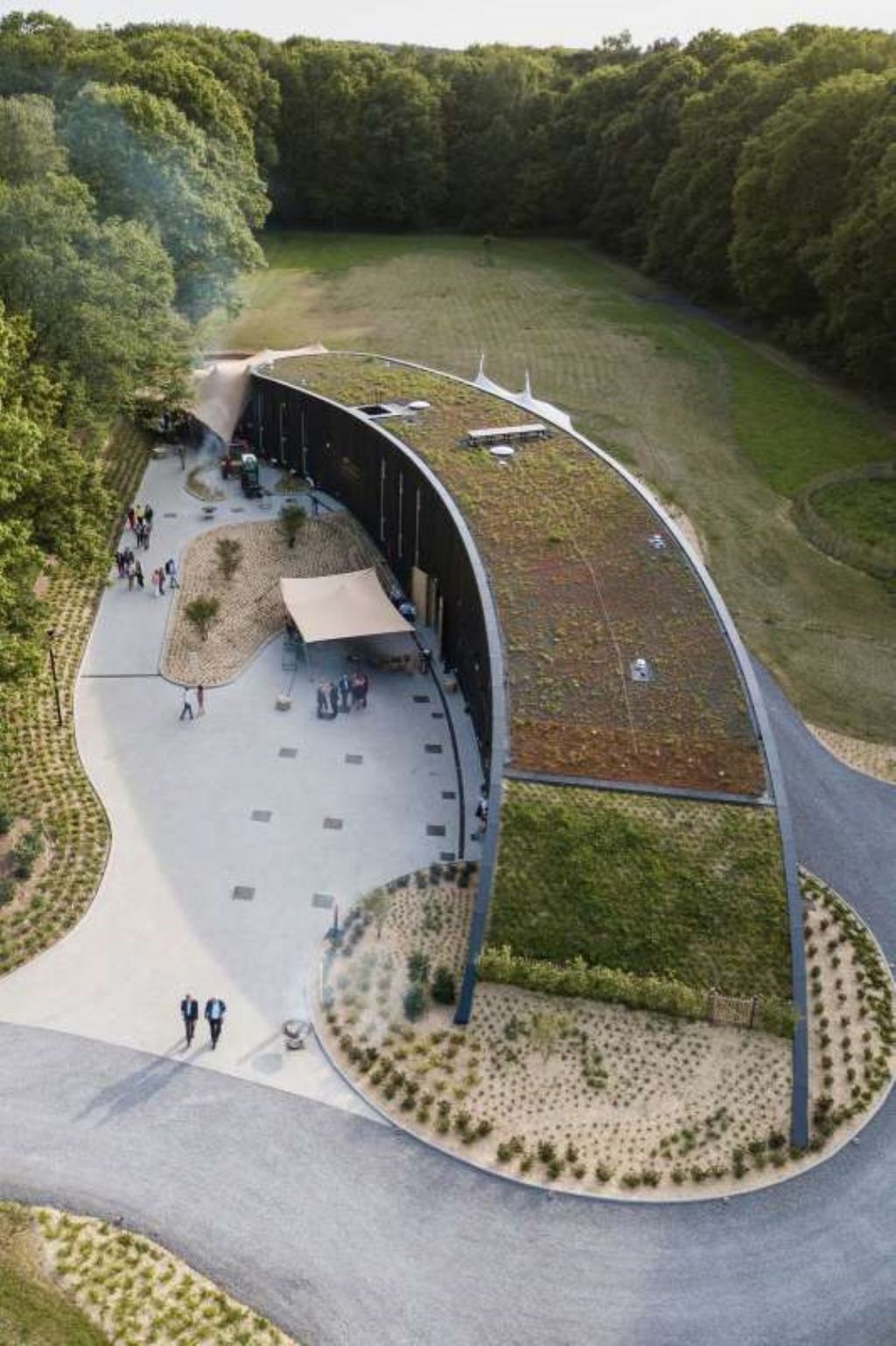 Le propriétaire du Vignoble du château de Bousval souhaitait un chai durable. Charly Wittock, du bureau d’architecture AWAA, lui a sorti un grand cru architectural. Un bâtiment en bois (CLT) pour s’intégrer au mieux dans le paysage.