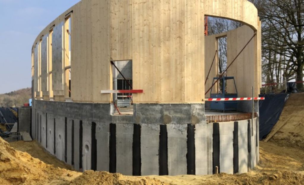 En raison des nombreuses courbes du bâtiment, une ossature tout en béton aurait coûté beaucoup plus cher qu’une structure mixte béton/bois. La partie enterrée du bâtiment est en béton tandis que la partie visible a été réalisée en panneaux CLT. « Aussi étonnant que cela puisse paraître, la construction en CLT a permis une économie d’environ 20% », affirme Charly Wittock. « Outre l’économie, le bois a aussi accéléré le processus de construction grâce aux éléments pré-montés tout en réduisant l’impact sur le site du chantier. »