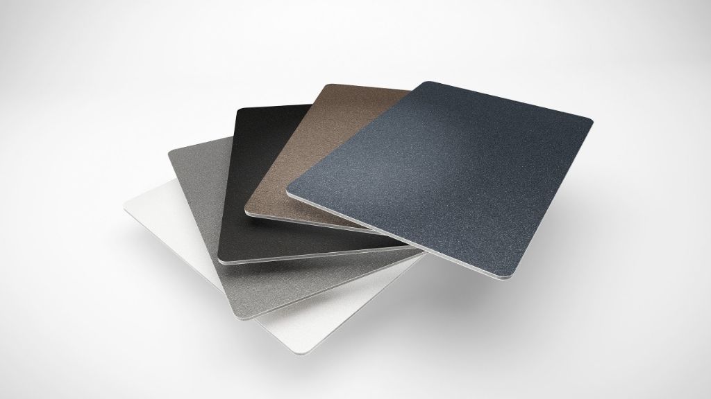 Ces panneaux fabriqués à partir de différents matériaux spécialement combinés sont à la fois très solides et extrêmement résistants à la flexion et aux impacts : la tôle d’aluminium de couleur qui forme la face visible des panneaux est traitée préalablement par coil coating (procédé de prélaquage en continu) avec des peintures haut de gamme, puis thermocollée sur une âme en polymère minéral. Ces produits peuvent également être livrés sur demande avec une âme A2 satisfaisant à des exigences très strictes en matière de protection incendie. Leur revêtement de qualité supérieure protège les panneaux contre les intempéries de longues années durant tout en garantissant une grande stabilité des couleurs et une parfaite résistance aux salissures.