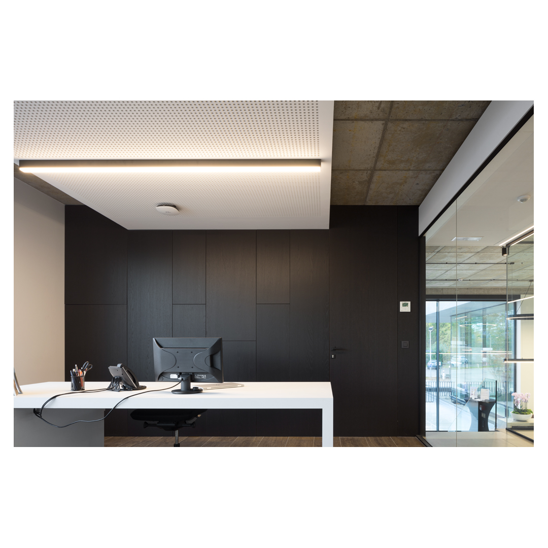 Van Hulle Bouwservice avait déjà utilisé les produits Print Acoustics chez différents clients pour la correction de la réverbération. De plus, les produits d'absorption acoustique avec surface stratifiée ou placage véritable complètent idéalement la gamme 'plafonds'.