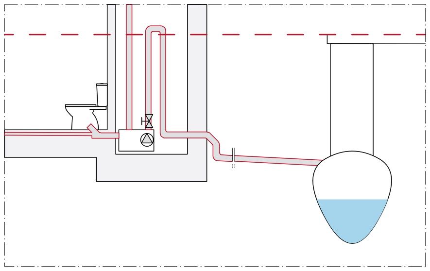 L’installation d’une pompe de relevage (voir photo), qui doit satisfaire aux exigences de la norme NBN EN 12050-1, est la solution offrant le plus de sécurité et la meilleure protection contre le reflux des eaux provenant de l’égout. Pour éviter que les eaux usées évacuées sous pression n’entraînent de surpressions dans les raccordements situés en amont, il faut veiller à ce que le raccordement du conduit de refoulement (de la pompe) au collecteur soit le dernier raccordement avant l’égout public.