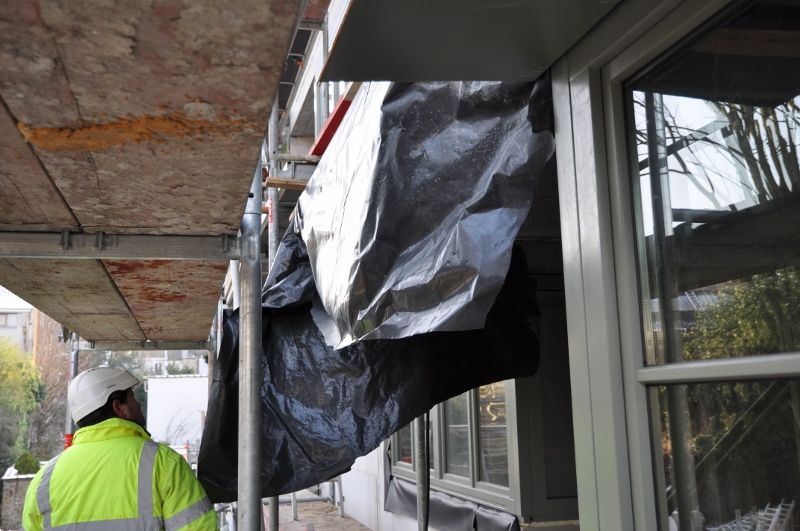 Le maintien de la propreté des éléments relève de la responsabilité de l'entrepreneur. Il doit installer et entretenir la protection jusqu'à la réception des travaux. En cas de contamination des éléments, l'entrepreneur est responsable de leur nettoyage. L'architecte attirera l'attention de l'entrepreneur sur ce sujet dans son cahier des charges et pendant les contrôles de chantier. En l'absence de protections ou si elles sont abimées, l’architecte le signalera à l'entrepreneur et le priera de prendre immédiatement les mesures adéquates.