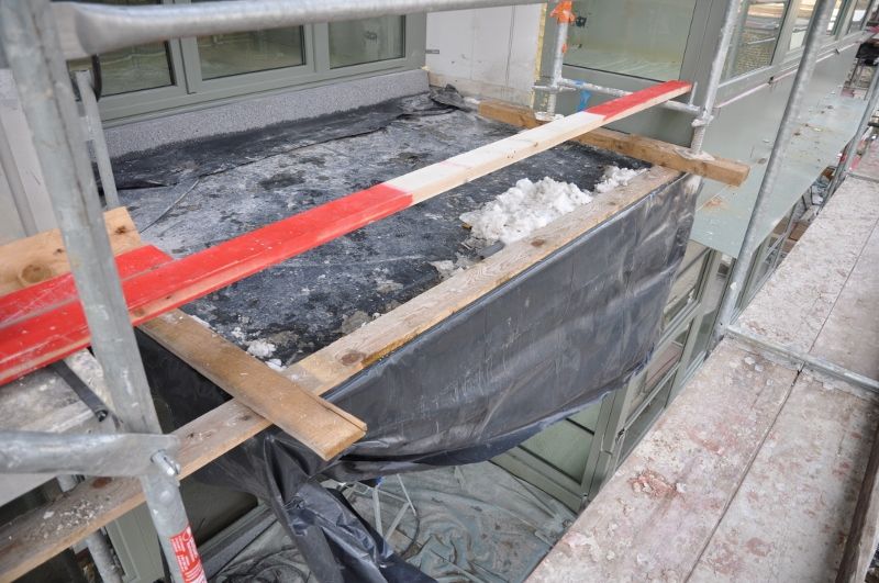 FEBELARCH, le groupement des fabricants de béton architectonique, prodigue pour cela un certain nombre de conseils. Les protections contre les salissures doivent être maintenues en place jusqu'à la fin des travaux. Pour les balcons, cette consigne s'applique jusqu'à la fin des travaux de peinture ; les façades peuvent être dégagées plus tôt. En outre, le bon état de la protection doit être contrôlé régulièrement et chaque défaut doit être réparé immédiatement.