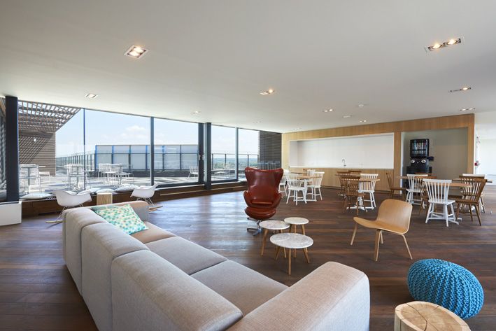 Le skylounge avec cuisine, espace de vie et table de billard peut être utilisé librement ou réservé comme extension à l’espace privatif. La terrasse en toiture de 360° est accessible à tous les habitants, en extension de leur terrasse privative. Les locaux de répétition de musique avec un piano à queue jouissent d'une acoustique parfaite et d'une excellente insonorisation. Un espace cinéma avec installation sonore professionnelle est disponible pour visionner un film ou un match de football entre amis ou en famille. Les enfants se retrouveront dans un espace dédié avec piscine à balles, tandis que les adultes profiteront de la vue sur Bruxelles en travaillant leur condition physique dans le coin fitness, accessible gratuitement aux résidents. Des mètres carrés de petits jardins en toiture sont même prévus, où les habitants peuvent cultiver leurs propres fines herbes ou petits légumes.