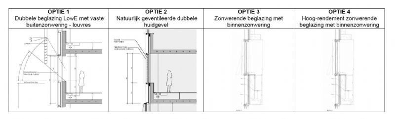 Afin de déterminer la solution optimale pour les façades sud et nord des bureaux du Quartier général de l'OTAN, une étude détaillée d’énergie et de confort a été réalisée. Différentes solutions de façade ont été comparées (peau simple avec protection solaire extérieure et intérieure, façade avec auvent, double peau, ventilation intégrée) en combinaison avec des technologies innovantes telles que l’activation de la masse thermique du béton,... afin de réaliser la solution la plus rentable et durable.