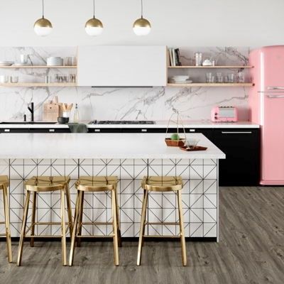 À l’instar des motifs imitant le bois, les structures qui rappellent la pierre font de plus en plus souvent forte impression : marbre, granit, ardoise… Le terrazzo moucheté opère même un retour en force. En cette ère numérique, où les changements se succèdent rapidement, nous cherchons à conserver des matériaux naturels séculaires qui ont résisté sans difficulté à l'épreuve du temps.