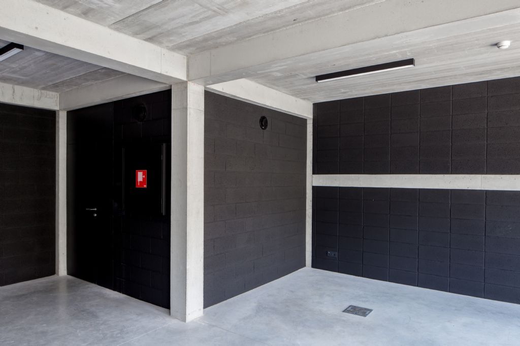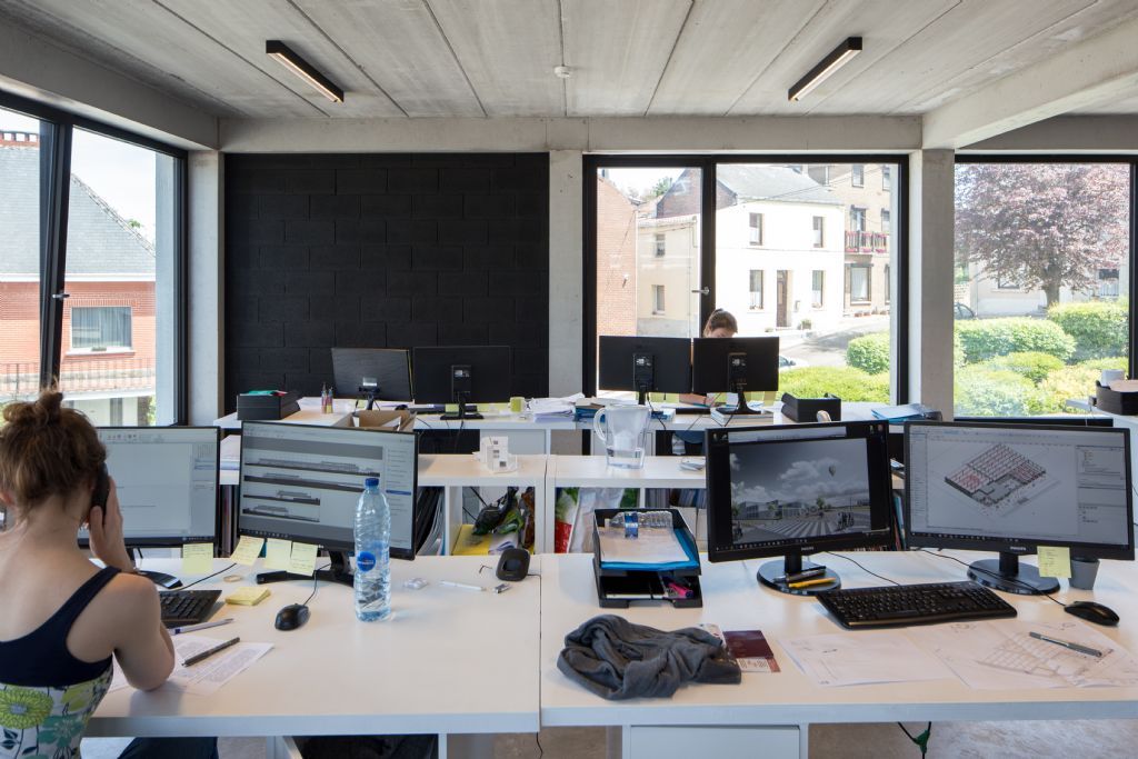 La trame géométrique du bâtiment, basée sur un carré, a été modulée à partir des dimensions du bloc de béton afin de calepiner l’ensemble du bâtiment à travers les rapports entre les différents éléments (poutres, colonnes, hourdis, allèges,…). Cette trame ainsi que la modénature des façades offre une grande durabilité au projet, qui pourra évoluer au gré de la vie du bâtiment. Il a en effet été pensé pour pouvoir reconvertir les plateaux de bureaux en appartements une chambre, afin de compléter l’offre des logements deux-trois chambres du bâtiment principal.