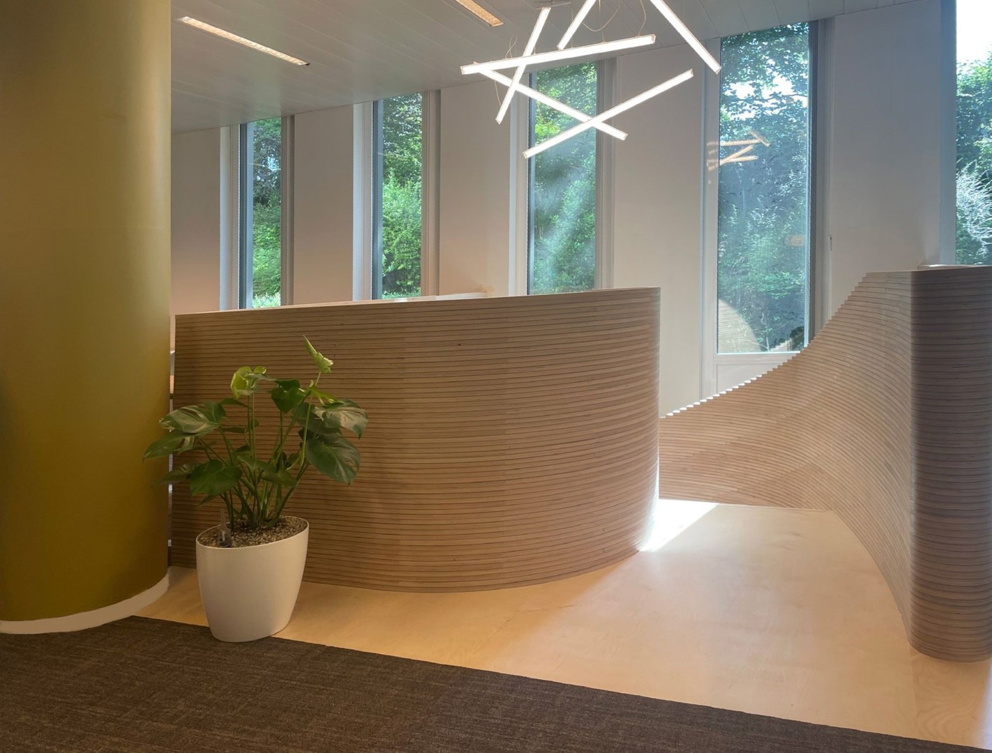 Réaménagement circulaire des bureaux de hub.brussels avec les produits Beddeleem