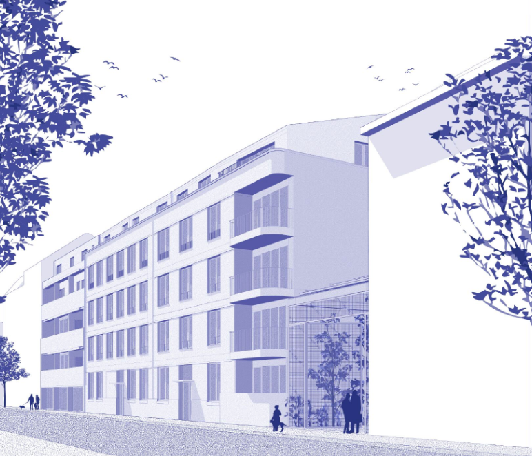 - De nouveaux bâtiments viendront border le quai de l’Industrie, la rue Heyvaert et la rue de Liverpool, tout en respectant les fronts de bâtisse existants. L’ancien bâtiment administratif situé rue de Liverpool 19 sera reconverti en logements sociaux, jouxtant deux immeubles composés de grands appartements traversants de plain-pied.