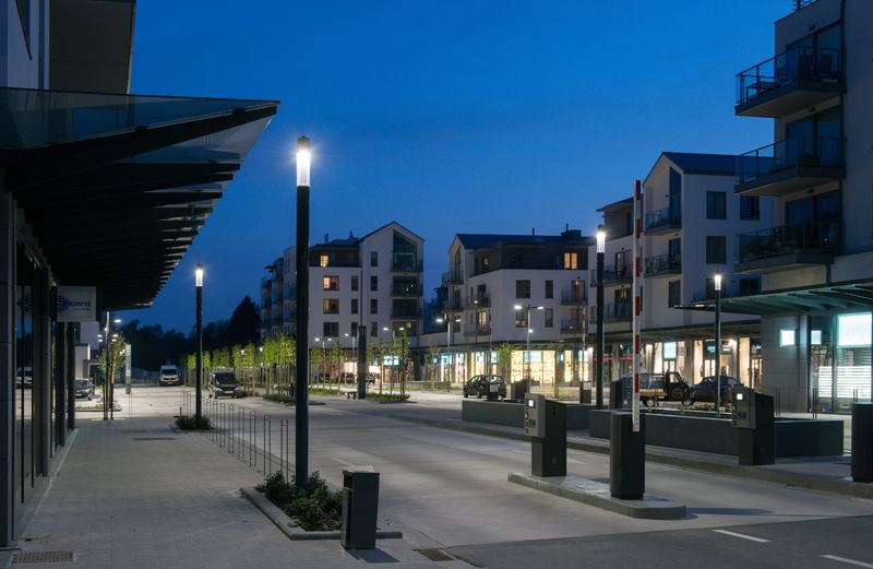 La configuration du site s’organise autour d’une place publique le long de la rivière la Lasne qui structure l’espace et favorise les échanges. De par sa faible consommation d’énergie et d’émission de CO2, il était donc évident de choisir la technologie LED pour l’éclairage de ce nouveau quartier. De plus, la lumière blanche émise par les LED offre un confort visuel parfait et un sentiment de bien-être aux résidents.