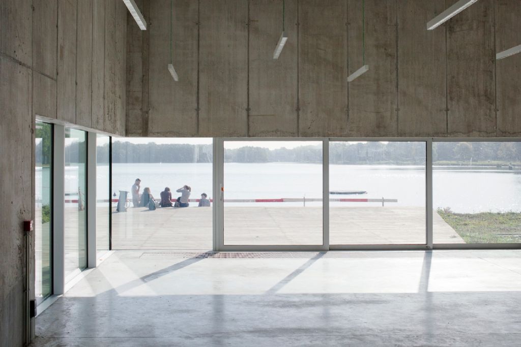 L’île sur laquelle se situe le centre sportif est au cœur du paysage alluvial de l’Escaut. Elle possède une tactilité spécifique et un haut potentiel écologique. C’est également un résidu marquant d’infrastructure industrielle fluviale. « Ce paysage alluvial est restitué dans la toile de fond du projet, marquée par des saules et une flore basse spécifique, sur laquelle un long élément d’infrastructure linéaire marque l’empreinte de l’homme - une jetée/ponton -, qui permet d’organiser les fonctions sportives classiques et l’internat », dit-on encore chez AgwA. « Lui faisant face, sur fond de paysage alluvial, se disposent plus librement des éléments complémentaires : la voilerie, les terrains extérieurs. Ce sol extensif est également habité de façon discrète par des lieux ouverts à appropriation : théâtre de verdure ou feu de camp, espace de pique-nique… »