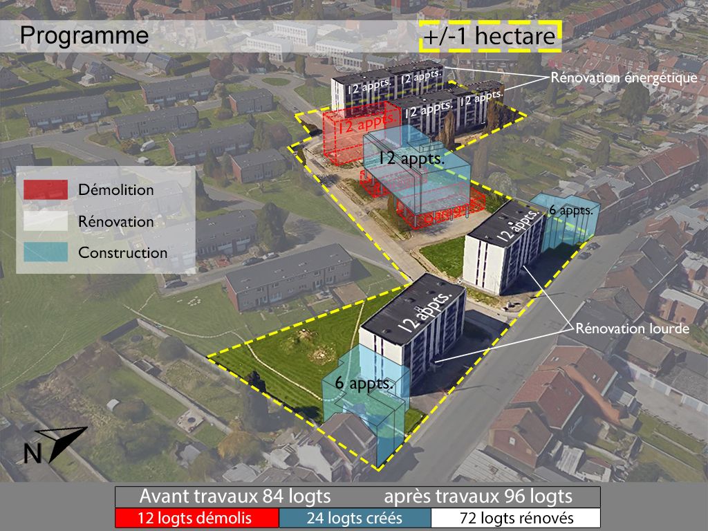 Ce projet dépasse la "simple" rénovation de logements mais s'inscrit dans une refonte globale du quartier afin de le requalifier. La rénovation lourde des immeubles a également été étudié sur les principes d'une conception passive.