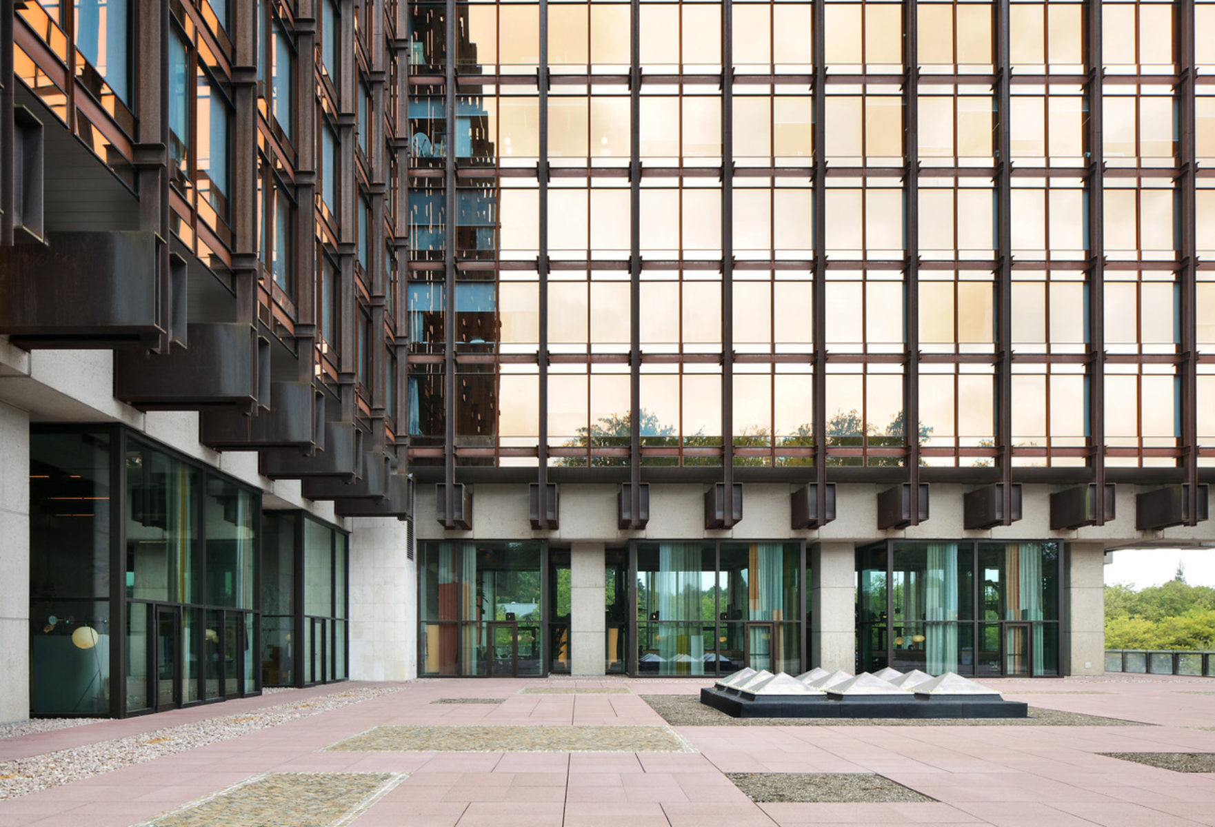 Enveloppée d'une forêt luxuriante de 11 hectares et entourée d'étangs, la Royale Belge trône sur le boulevard du Souverain tel un château contemporain. Un édifice que l’on doit aux architectes René Stapels et Pierre Dufau, ce bâtiment des années 60 est un exemple audacieux de l'architecture luxueuse d'entreprise de l’époque. Grâce à son cadre unique, sa base en verre transparent, sa tour cruciforme, sa structure en Corten et ses façades en verre couleur bronze, la Royale Belge est devenue un véritable monument dans le paysage architectural bruxellois et a fini par atterrir sur la liste de sauvegarde en 2019.