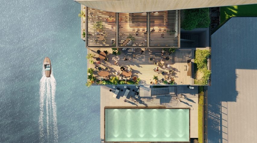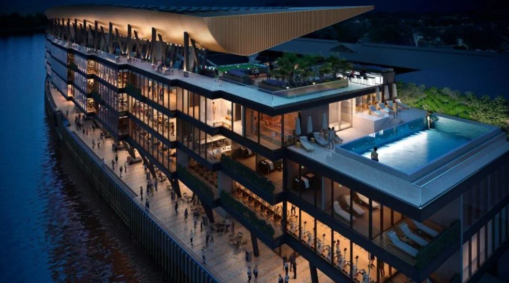 La piscine, située au sommet de la tribune dans le cadre du Sky Deck sur les trois derniers étages, offrira une vue magnifique non pas sur le terrain, mais sur la Tamise, ajoutant une touche de sérénité et de luxe à l'expérience des visiteurs.