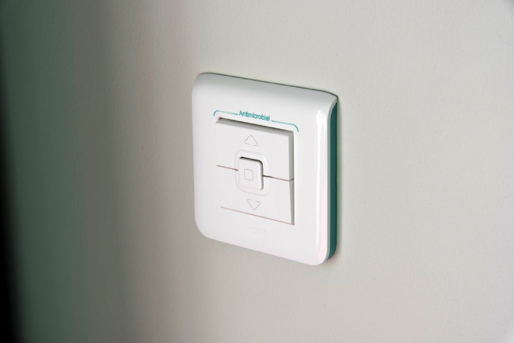 Jean-Pierre Thonar, Key Account Engineer Legrand : « Legrand était l’unique fournisseur. Toutes les installations nécessaires proviennent de notre vaste gamme de produits. L’un des produits que nous avons utilisé dans l’ensemble du bâtiment est l’appareillage antimicrobien de la gamme Mosaic, idéal pour les hôpitaux, où l’hygiène est une priorité. Les produits sont conçus à partir d'un matériau antimicrobien à base d’ions argent (ag+). Cette technologie rend possible la destruction partielle de la plupart des bactéries sans effets d’accoutumance ou de résistance. La destruction est physique et non chimique, ce qui offre une garantie supplémentaire de non-prolifération des bactéries. Les salles de réunion et le service radiologie sont quant à eux équipés du système domotique MyHOME. Le système d’exploitation central permet de programmer des paramètres personnels pour entre autres la luminosité, le son et le chauffage. Grâce au MyHOME dans la pièce où les radios sont examinées, le médecin ou technicien peut ajuster la luminosité d’une pression sur le bouton. Il y a 3 modes : 30 %, 60 % et 100 %. Enfin, il reste les Lighting Management Solutions. Dans les bureaux, écoles et hôpitaux, ce sont le chauffage et l’éclairage qui consomment le plus d’énergie. À Notre-Dame de Grâce, le problème s’est surtout posé dans les vestiaires du service radiologie où on oubliait parfois d’éteindre la lumière le soir. Legrand avait cependant la solution idéale. Chaque cabine dispose aujourd’hui d’un capteur qui allume la lumière lorsqu’un patient entre dans la cabine et l’éteint après un certain temps quand la pièce est vide. De cette manière, toutes les lumières sont éteintes dans les cabines à la fin de la journée. »