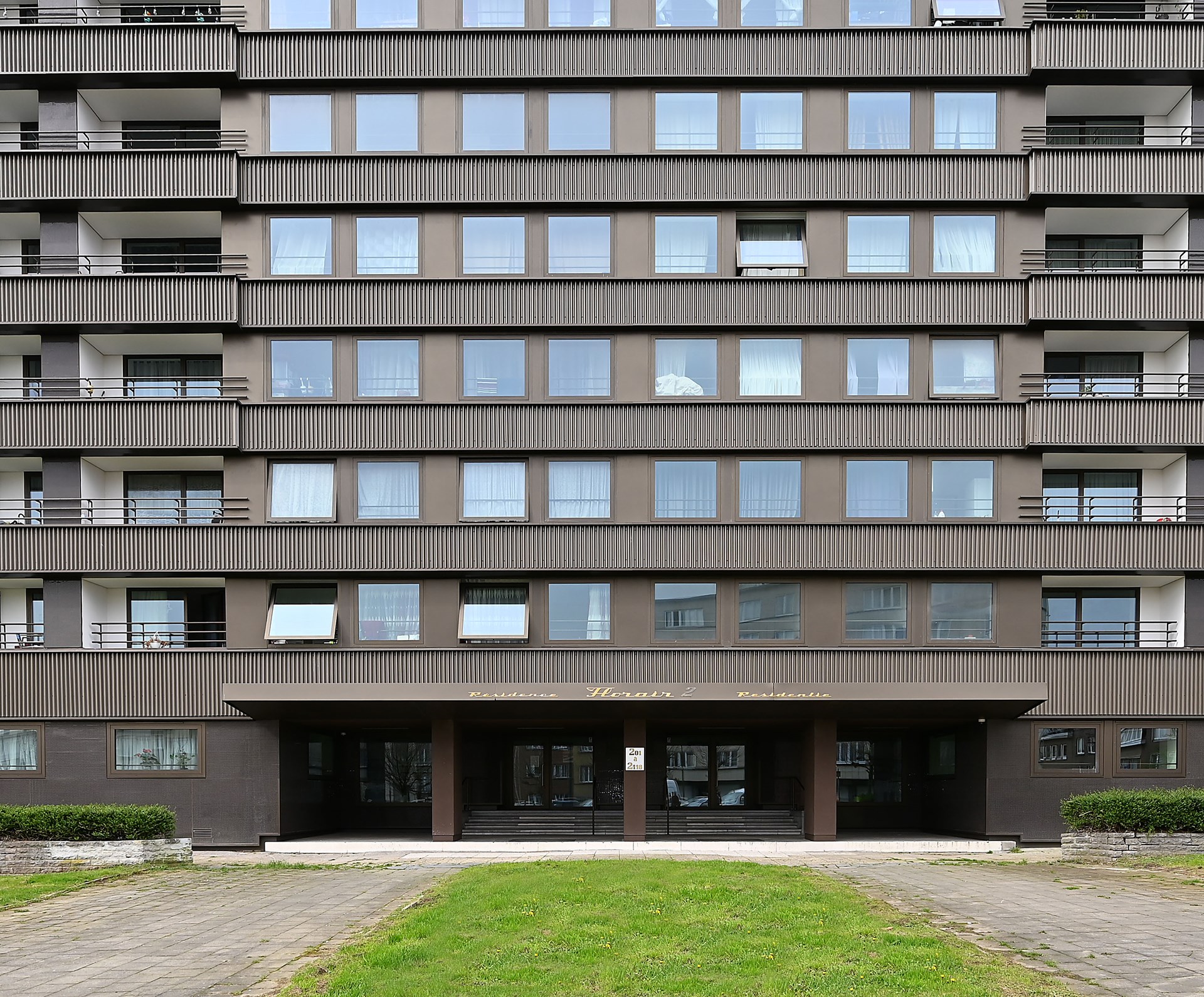 La zone de soubassement et les intercalaires entre les balcons ont été isolés par l'extérieur à l'aide du système de façade StoVentec M, reconnu pour son utilisation de granulats de verre recyclés et sa conception sur mesure. La touche finale a été apportée par un enduit décoratif et le StoGlass Mosaic .