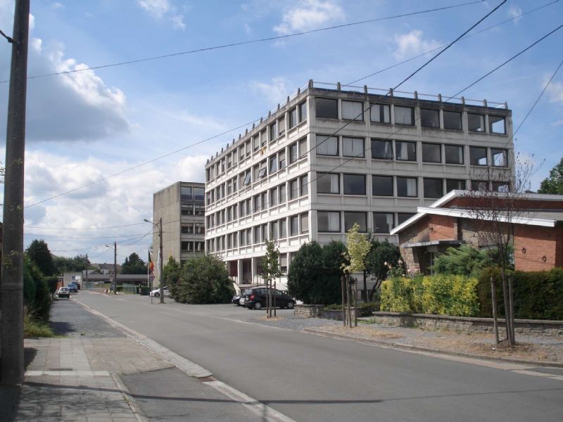 Le bâtiment fait partie d’un lot de 3 constructions érigées dans le milieu des années ’70 conçues pour héberger des services publics. Ces 3 bâtiments sont composés des mêmes éléments répétitifs en béton architectonique qui forment la façade et la structure portante des bâtiments. Préalablement à la rénovation, le bâtiment fut désamianté par l’entreprise montoise SBMI. De l’amiante était notamment présente dans le calfeutrage de certaines gaines ainsi que dans la colle du revêtement de sol.