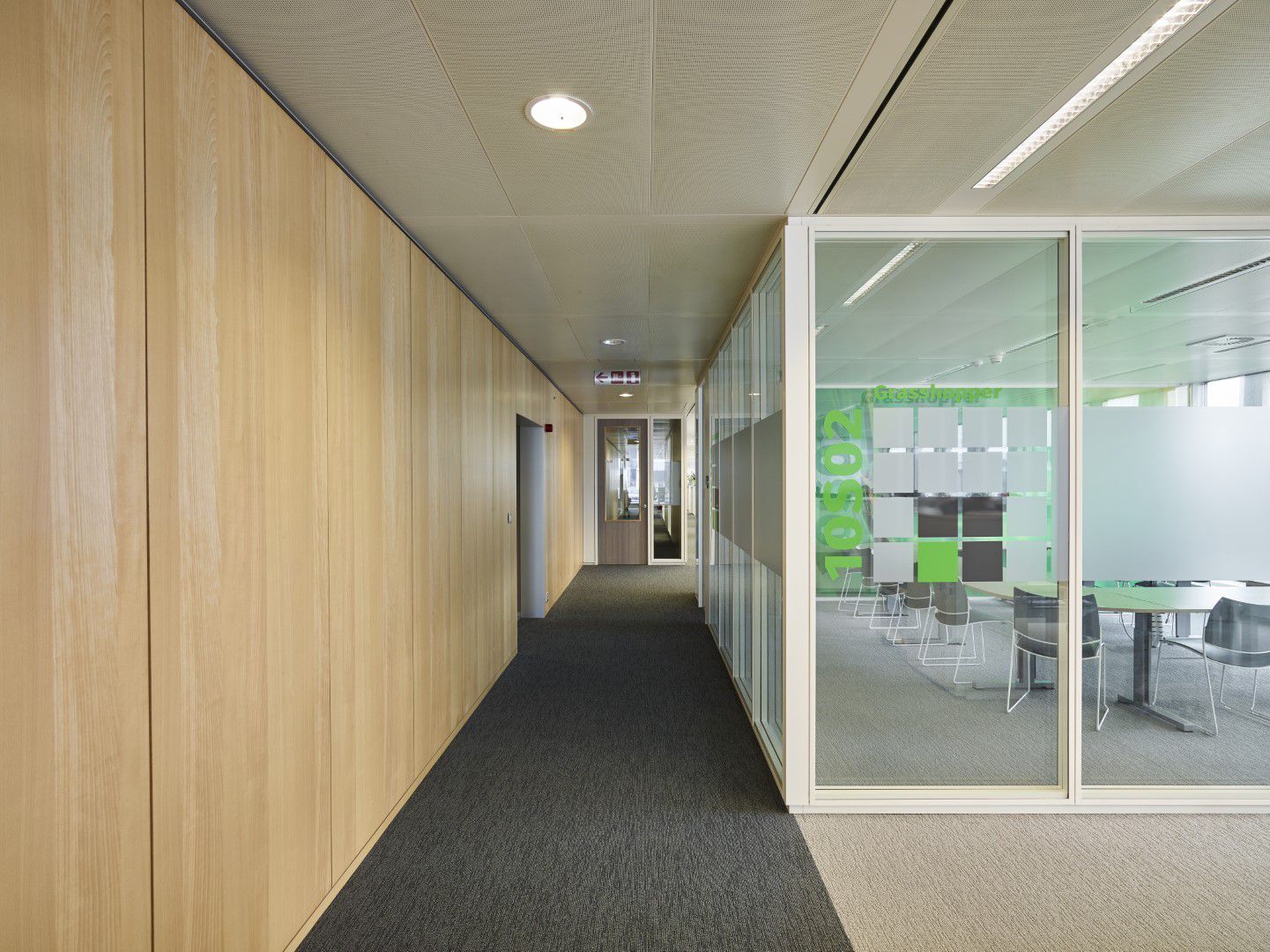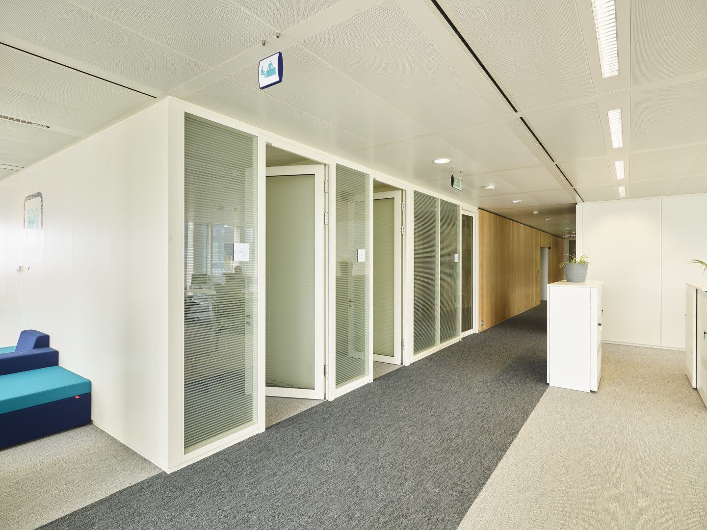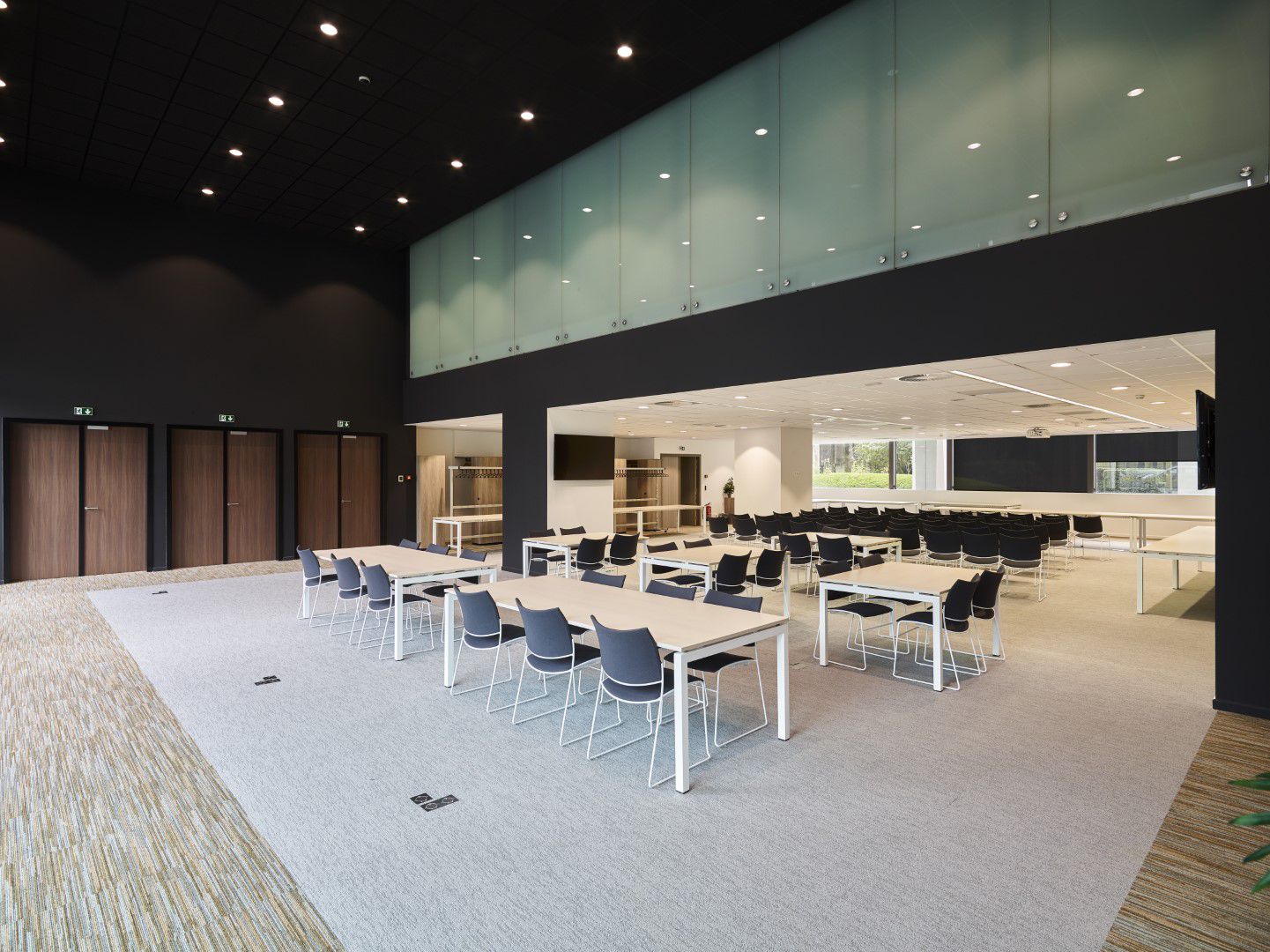 Jochen Daneels, Directeur commercial et Dieter Daneels, Chef de Projet de Beddeleem : « Nous nous sommes occupés du parachèvement total, y compris toutes les techniques de ce projet 'Nouveau Mode de Travail'. L'entrepreneur général retenu par l'appel d'offres a fait appel à Beddeleem en raison du planning pour la réalisation complète du projet. Tous les produits Beddeleem ont été installés : cloisons amovibles JB, plafonds climatisants JB COOL, ensembles de portes JB DOOR, casiers JB LOCKERS, etc. Pour les lots techniques, nous faisons bien sûr toujours appel à un certain nombre de partenaires fiables. Après tout, les délais de mise en œuvre, de plus en plus courts d'aujourd'hui, ne nous permettent plus de travailler avec des parties arbitraires. »