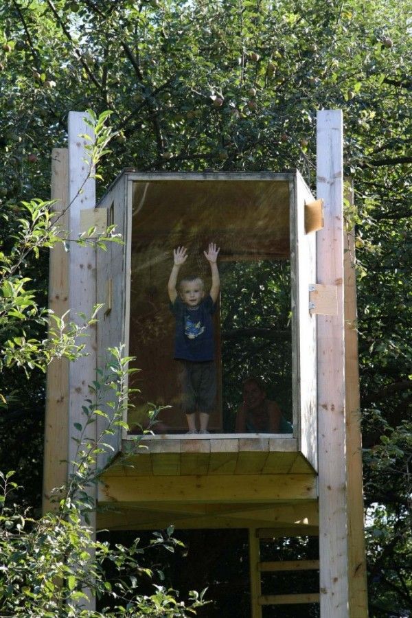 Cette cabane dans les arbres est la seule de la liste à être spécialement destinée aux enfants. Robert Potokar et Janez Breznik ont imaginé une construction indépendante, construite en contreplaqué de sapin. Un vernis incolore et une toiture en carton protègent l'intérieur des éléments. A l'intérieur, des ouvertures à manipuler soi-même et des meubles faciles à monter procurent aux enfants un sentiment de maîtrise. Une grande fenêtre en plexiglas au bout de la maisonnette offre une belle vue.