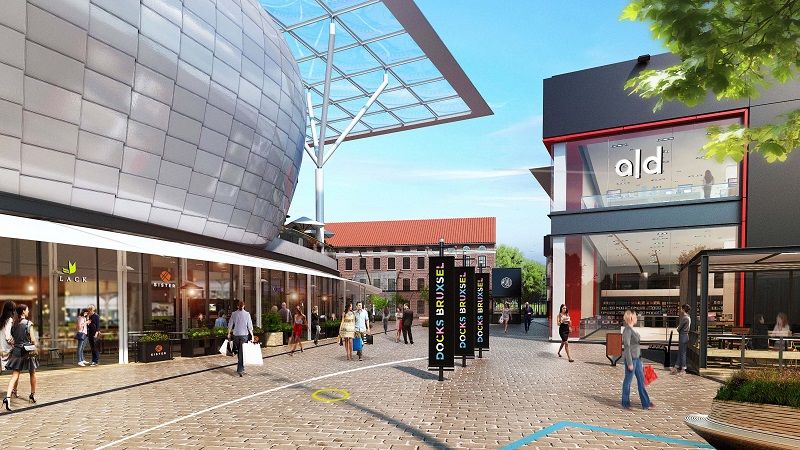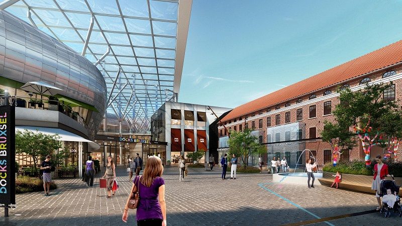 Il y aura huit bâtiments dont un central en forme d’ellipse. Six des huit bâtiments seront mis sous une immense verrière de 11.000 m², évitant aux visiteurs de se sentir enfermés tout en étant protégés des intempéries et bénéficiant d’un éclairage naturel. Par ailleurs, le premier bâtiment industriel de Bruxelles, datant de 1830, appelé la « Cathédrale », qui abritait autrefois une fabrique d’indiennes, sera entièrement réaménagé pour céder la place à trois commerces, aux bureaux d’administratifs de Docks, ainsi qu’à un espace muséal. C’est la première fois en Belgique qu’un shopping intègre des éléments patrimoniaux dans son concept.